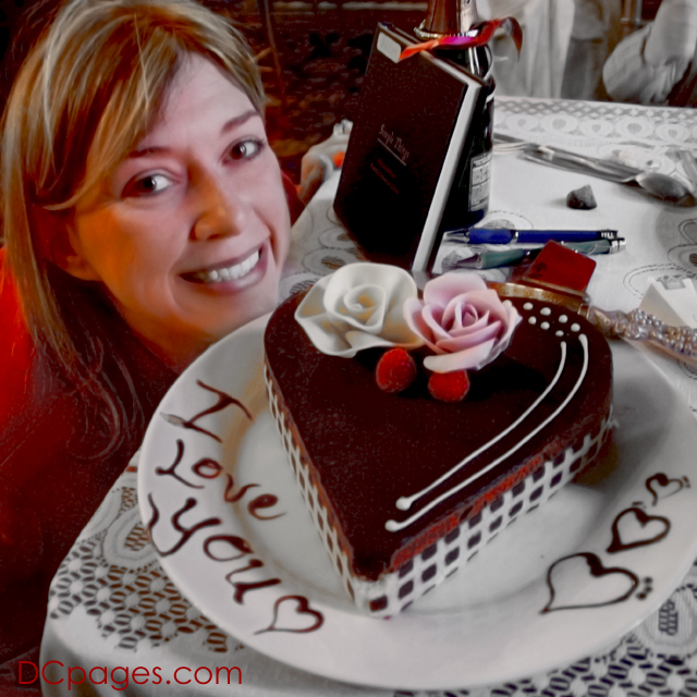 Valentine's day treat for my love. That staff created a heart shaped chocolate mouse cake topped with two sugar roses.